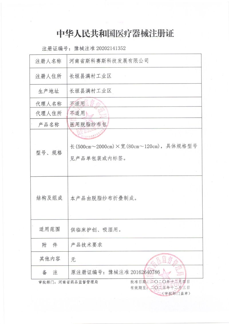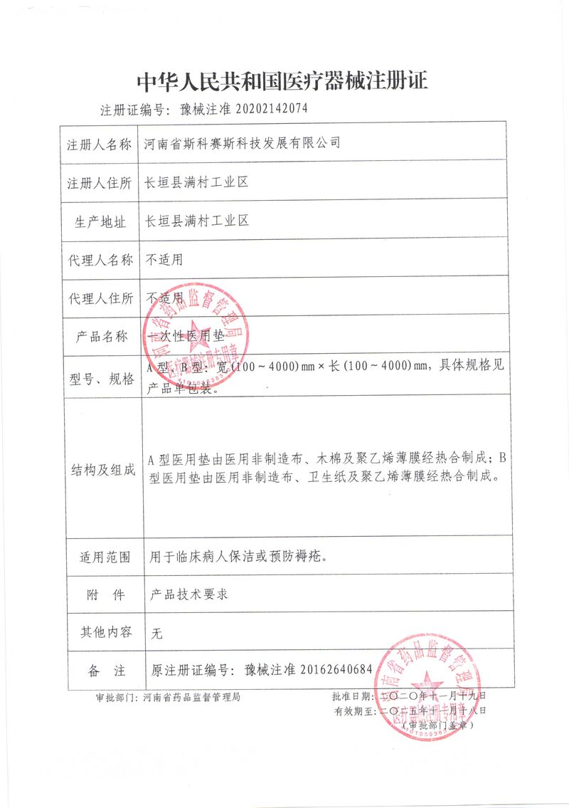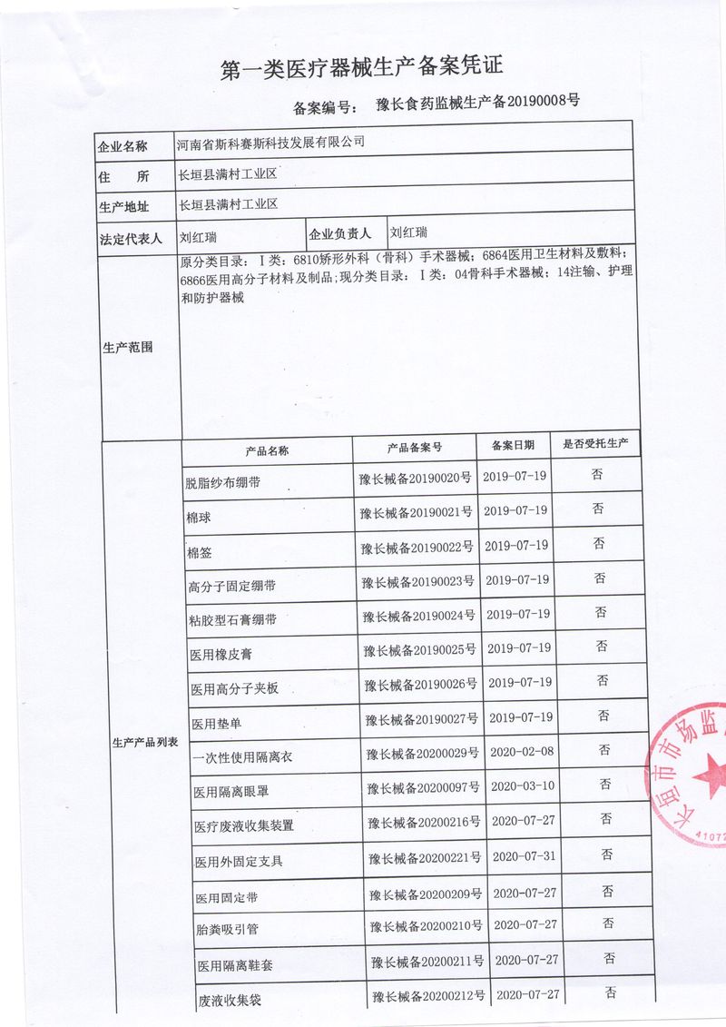 河南省斯科賽斯科技發(fā)展有限公司創(chuàng)建于 2011 年,位于“中國醫(yī)療耗材之都”- 河南省長垣縣,西臨 308 省道,南靠新菏鐵路,北依長濟(jì)高速,交通便捷,經(jīng)濟(jì)發(fā)達(dá),環(huán)境優(yōu)美。斯科賽斯積極進(jìn)入醫(yī)療健康和服務(wù)領(lǐng)域,秉承為用戶創(chuàng)造價值的理念,專注于醫(yī)用耗材解決方案的研發(fā)和運營,并為用戶提供完善的產(chǎn)品解決方案;  斯科賽斯主要生產(chǎn)醫(yī)用麻醉系列、醫(yī)用高分子系列、醫(yī)用敷料包系列、醫(yī)用無紡布系列、醫(yī)用防護(hù)系列、醫(yī)用脫脂棉系列、生物材料制品類等七大類、100 多個品種、400 多個規(guī)格的產(chǎn)品。公司占地面積約 30000 平方米,建筑面積20000 平方米,擁有 10 萬級的凈化車間總面積 10000 平方米。擁有國際先進(jìn)水平的生產(chǎn)設(shè)備和檢測儀器,技術(shù)裝備精良,檢測手段完善,為醫(yī)療行業(yè)的不斷發(fā)展進(jìn)步提供保障。公司順利通過 ISO9001、ISO13485 質(zhì)量管理體系認(rèn)證?! ∷箍瀑愃箞猿盅邪l(fā)高科技新產(chǎn)品,力爭在醫(yī)療器械關(guān)鍵領(lǐng)域取得技術(shù)和研發(fā)的重大突破;立足國內(nèi)和國際兩個市場,逐步實現(xiàn)管理理念、經(jīng)營機(jī)制、人力資源、技術(shù)、產(chǎn)品、市場等全方位對接,提高企業(yè)的核心競爭力;過去的歲月里,斯科賽斯砥礪前行,誠信務(wù)實,銳意進(jìn)取,不斷創(chuàng)新,用自己的睿智和辛勞,以富有責(zé)任感的使命,在探索中追求,在追求中超越,致力于成為值得信賴的醫(yī)療用品生產(chǎn)企業(yè)!在未來的日子里,斯科賽斯將一如既往豪情滿懷,信心百倍,攜手并肩,執(zhí)著追求,向更高的的目標(biāo)前進(jìn),鑄造新的輝煌!